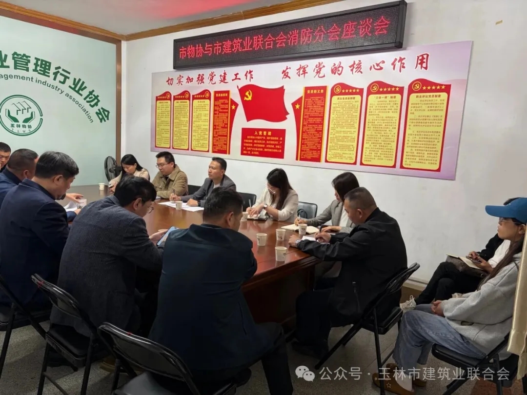 2025年11月5日下午,玉林市建筑業(yè)聯(lián)合會(huì)建設(shè)工程消防分會(huì)與玉林市物業(yè)協(xié)會(huì)交流座談會(huì)在市物業(yè)協(xié)會(huì)會(huì)議室順利舉行。雙方協(xié)會(huì)領(lǐng)導(dǎo)、副會(huì)長(zhǎng)單位及相關(guān)會(huì)員單位代表齊聚一堂,圍繞物業(yè)領(lǐng)域消防工作熱點(diǎn)難點(diǎn)展開深度交流,凝聚行業(yè)共治共識(shí)。